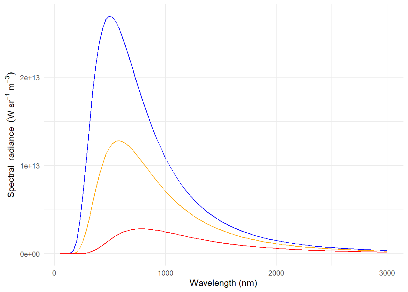 A figure of spectral irradiance is difficult to read as both the shape of the curve and the maximum spectral irradiance change in parallel Figure 4.13.